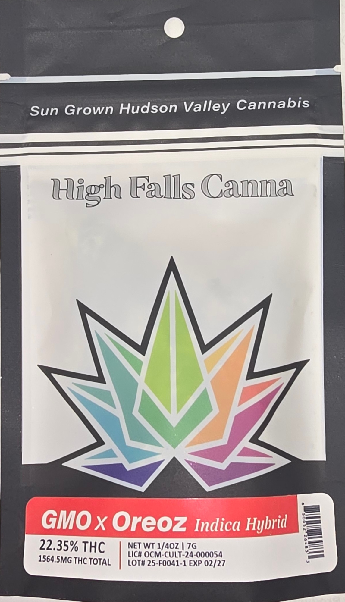 The GMO x Oreoz strain is an indica-dominant hybrid cannabis strain created by crossing the pungent, garlic-flavored GMO strain with the sweet, chocolatey Oreoz strain. It is known for producing a deeply relaxing body high and euphoric effects, with reported flavors of sweet cookie, chocolate, and diesel. The balanced effects can also provide mental uplift and help with creativity, making it suitable for unwinding or creative pursuits