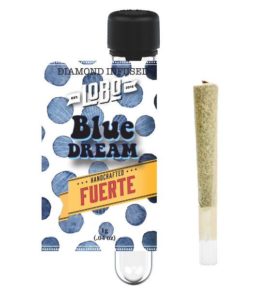 sativa-Distinct smell and taste of blueberry. Blue Dream is a sativa-dominant hybrid, a cross of Blueberry and Haze. This strain produces a balanced high, upbeat and focuses, along with effects such as cerebral stimulation and full-body relaxation. Fuerte means strong, and this glass-tip, THCa diamond infused joint delivers. 1g of terpy flower nugs, never any trim. Reusable glass-tip.