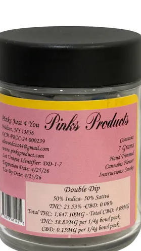 Double the indulgence with Pinks: Double Dip (7g)—a full Quarter of premium smokable flower that combines delicious flavor with mood-lifting effects. This hybrid strain delivers sweet, candy-like notes with a creamy finish, offering a smooth smoke and a euphoric, feel-good high. Perfect for daytime enjoyment or an evening treat, Pinks: Double Dip is your go-to for a flavorful and uplifting experience that leaves you craving more.