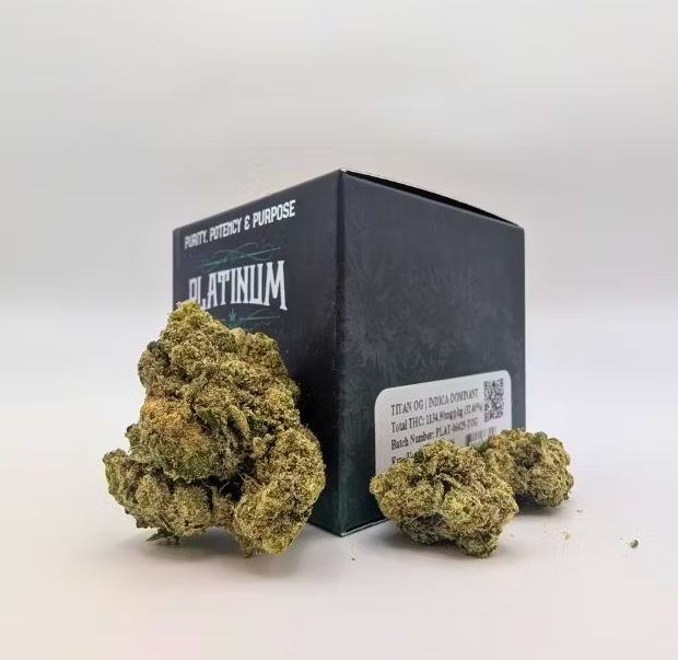 Titan OG is a rare, indica-dominant hybrid strain. Breaking apart each sticky nugget releases fresh aromas of spicy citrus and pungent earth. The flavor profile is similar—a sweet, kushy overtone accented by fresh earth and herbs on exhale. Titan OG's effects begin almost immediately after exhaling, first affecting your mind before spreading warming sensations throughout your body. The high begins with an uplifting mental effect that brings blissful happiness, mild mental haziness, and bursts of creativity. As your mind settles into this euphoric state, your body gradually eases into deep relaxation. Warming tingles spread throughout, leading to a gentle couch-lock that leaves you mildly sedated and perfectly calm. Feelings: Relaxed, Creative, Sleepy