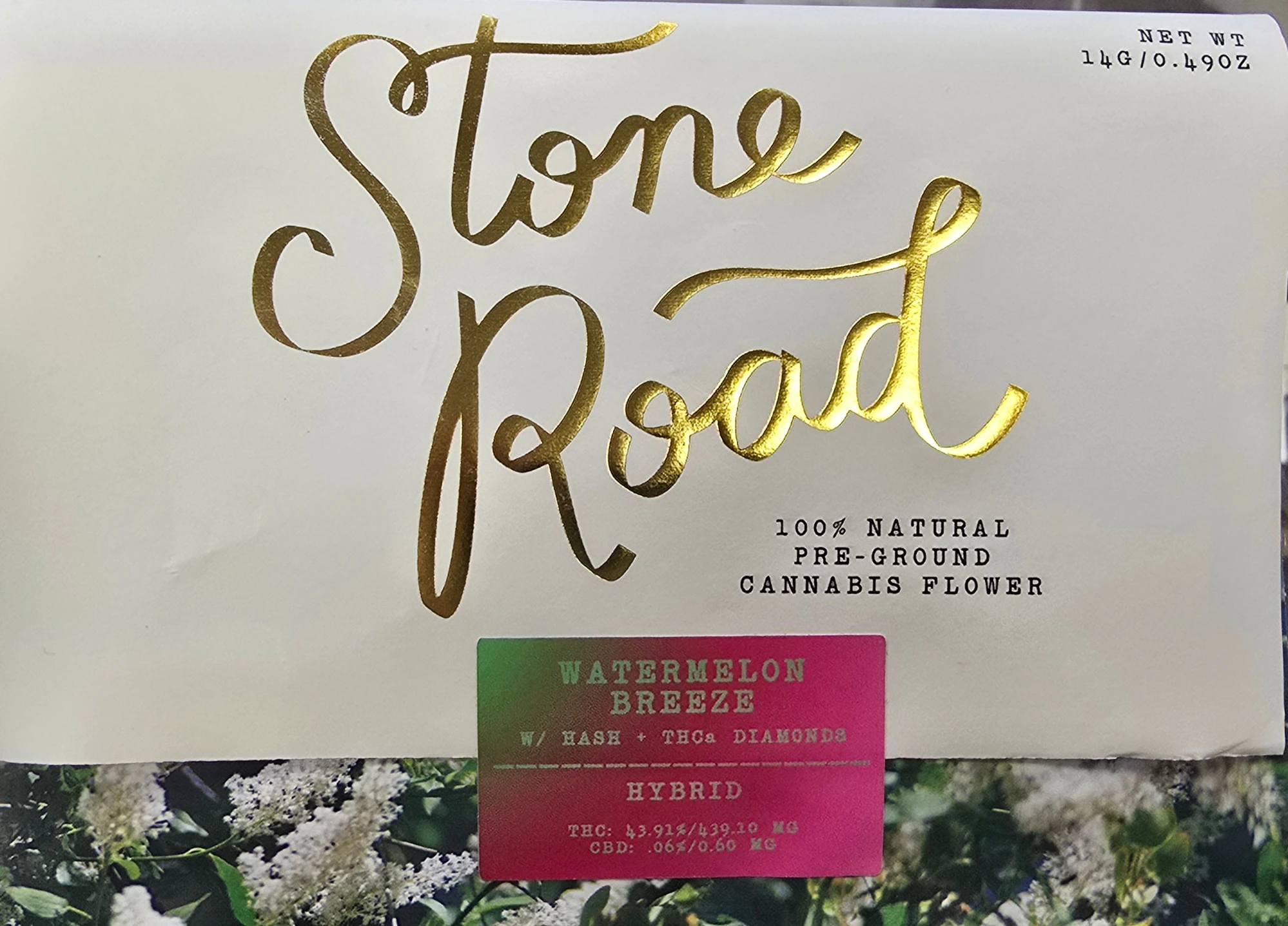 Watermelon Breeze has a tart and fruity watermelon flavor. This hybrid flower is perfectly balanced and perfect for focus and creativity. This pre-ground pouch is 100% pre-ground flower containing no shake or trim. Infused with bubble hash and diamonds, this ultra-potent pack includes papers and filters.