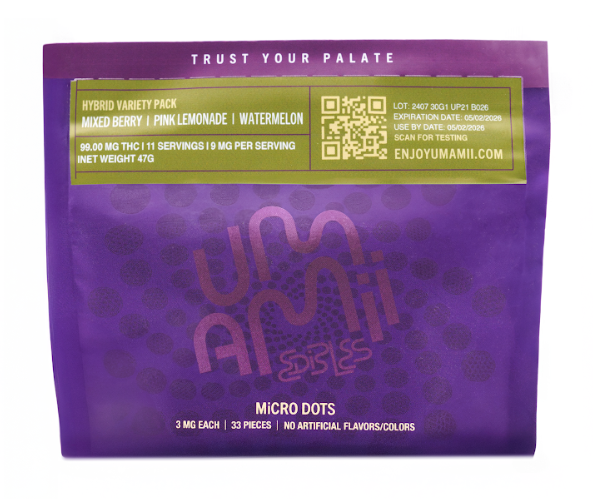 Each of Umamii's Micro Dots starts with cannabis 100% curated, grown, and hrvested by our own team. We only utilize full spectrum extracts, ensuring you will never find distilate in Umamii Micro Dots. Enjoy a high quality and flavorful experience everytime!